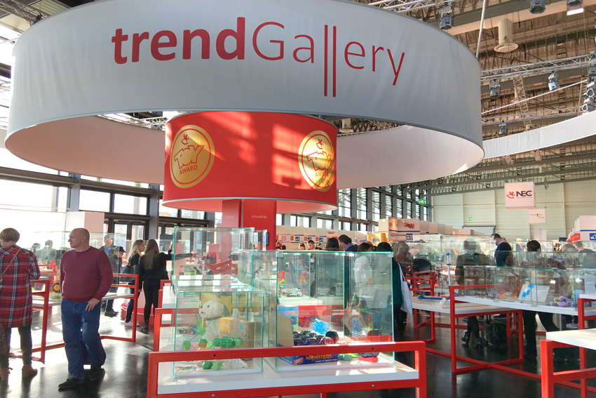 In der Trend Gallery wurden die Trends „Ready Steady Play“, „ Wow-Effect“ und „Toys 4 Kidults“ herausgearbeitet: Viele Eltern sind besorgt über den Umgang ihrer Kinder mit Smartphones und Co. und wünschen sich ein größeres Angebot an Bewegungsspielen, der Markt reagiert darauf: Ready Steady Play! Der „Wow-Effect“ beschreibt Produkte, die Kinder wirklich überraschen und verzaubern. Doch nicht nur Kinder sind die Zielgruppe für Spielwaren. Immer mehr Produkte richten sich an Erwachsene und deren Spieltrieb: „Toys 4 Kidults“.