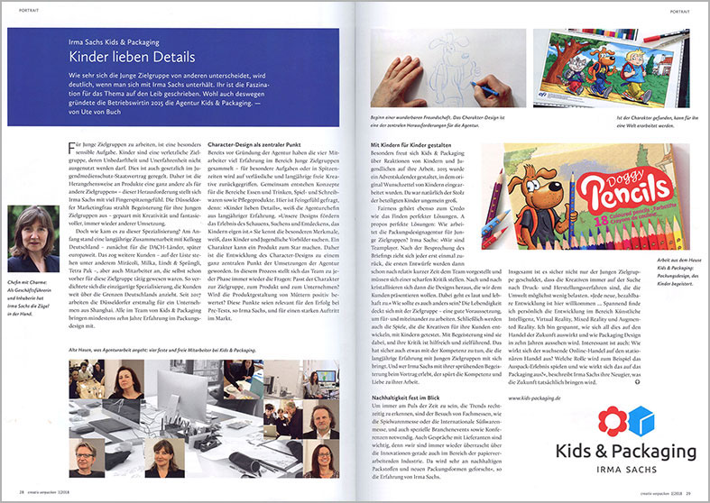 Für Junge Zielgruppen zu arbeiten, ist eine besonders sensible Aufgabe. Kinder sind eine verletzliche Zielgruppe, deren Unbedarftheit und Unerfahrenheit nicht ausgenutzt werden darf. Dies ist auch gesetzlich im Jugendmedienschutz-Staatsvertrag geregelt. Daher ist die Herangehensweise an Produkte eine ganz andere als für andere Zielgruppen – dieser Herausforderung stellt sich Irma Sachs mit viel Fingerspitzengefühl. Die Düsseldorfer Marketingfrau strahlt Begeisterung für ihre Jungen Zielgruppen aus – gepaart mit Kreativität und fantasievoller, immer wieder anderer Umsetzung. Doch wie kam es zu dieser Spezialisierung? Am Anfang stand eine langjährige Zusammenarbeit mit Kellogg Deutschland – zunächst für die DACH-Länder, später europaweit. Das zog weitere Kunden – auf der Liste stehen unter anderem Miracoli, Milka, Lindt & Sprüngli, Tetra Pak – , aber auch Mitarbeiter an, die selbst schon vorher für diese Zielgruppe tätig gewesen waren. So verdichtete sich die einzigartige Spezialisierung, die Kunden weit über die Grenzen Deutschlands anzieht. Seit 2017 arbeiten die Düsseldorfer erstmalig für ein Unternehmen aus Shanghai. Alle im Team von Kids & Packaging bringen mindestens zehn Jahre Erfahrung im Packungsdesign mit.